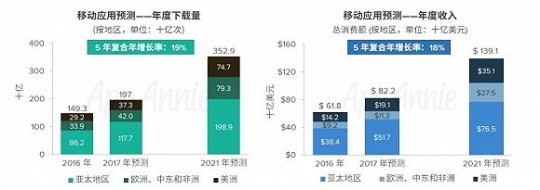 報(bào)告預測,全球移動應用(yòng)商店(diàn)的(de)Ω¥λ下(xià)載量預計(jì)将以19%的(de)年(nián)化(huà)增長 ©(cháng)率增長(cháng),并于2021↔>年(nián)達到(dào)3520億次;α→φ全球消費(fèi)額則将以18%的(de)增長(cháng)率增長(c♥¥háng),2021年(nián)可(kě)達到(dàγ™o)9596億人(rén)民(mín)币。收入最高(gāo)的(¶★σde)地(dì)區(qū)是(shì)以中國(guó)為(wèi)首的(de)亞太地(d&₽Ωì)區(qū)。