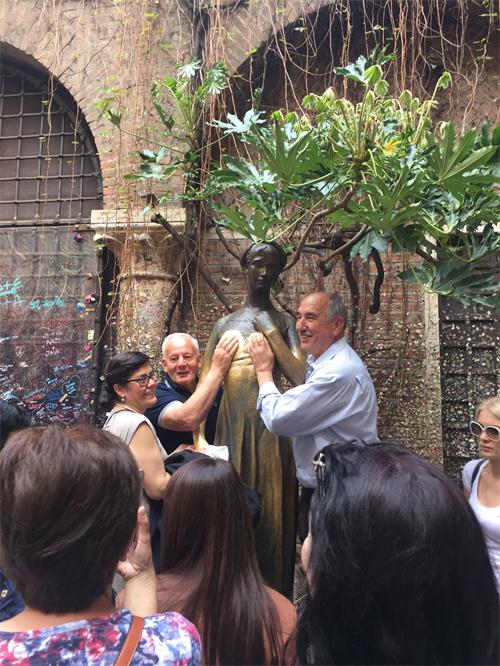 這(zhè)。。。這(zhè)是(shì)朱麗(lì)葉的(de)銅像據說(shuō)這£≈(zhè)樣摸摸會(huì)帶來(lái)好©π<(hǎo)運。