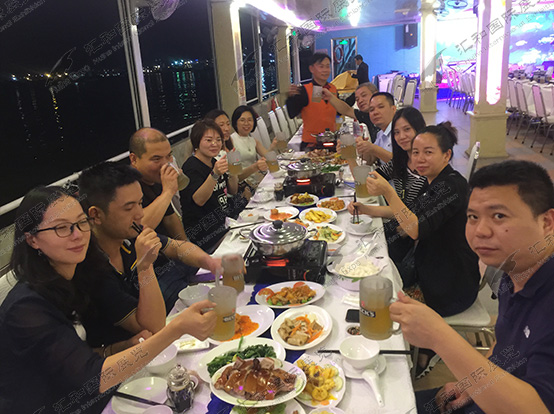 展會(huì)結束後,為(wèi)了(♥φ★le)讓大(dà)家(jiā)放(fàng)¶↑±松一(yī)下(xià)這(zhè)幾天緊繃的(d ♥♥♠e)神經,我司安排了(le)晚上(shàng)遊船(chuán)活₽©動,吃(chī)著(zhe)美(měi)味的(de)£✔'$佳肴,看(kàn)著(zhe)有(yǒu)趣的(de)船(chuán)上(shàn↑±•g)表演。到(dào)晚餐結束後崔總還(hái)自(zì)告奮₩♣≈勇的(de)上(shàng)台獻了(le)一(yī)首歌(¥≤gē)。也(yě)為(wèi)我們這(zhè)次展會(hu∏♦ì)之旅,畫(huà)上(shàng)了(le)圓滿的(de)句号。