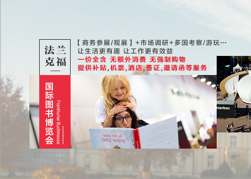 北(běi)京彙和(hé)展覽獲得(de)法蘭克福♦ &書(shū)展主辦方授權,從(cóng)2012年(nián)起,已連續多(duō)年(ni×βán)組織中國(guó)企業(yè)參加此展會(huì),有(yǒu)豐富的(de)組團經驗。∏$≤為(wèi)中國(guó)參展商、觀衆提供展位、商務參展(觀展)團,國(guó)際機(jī)票(piào),境外(wài)酒™₹店(diàn),以及商務簽證、官方邀請(qǐng)函、書(shū)展門(mén)票(Ω✔piào)(含免費(fèi)交通(tōng)),展會(huì)會(huì)刊(含4200家(λ©≠jiā)展商信息)等服務。